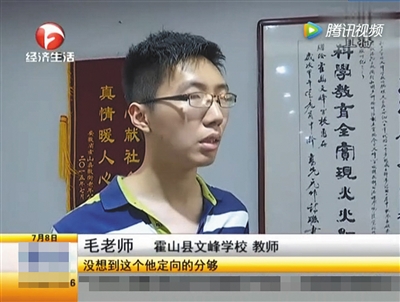 7月11日上午,记者获悉,霍山县教育、已经向上级六安市教育、提交文件,申请为该考生调配一个指标能让考生重新填报志愿,同时对霍山文峰中学进行通报批评。