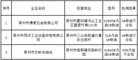 11月17日,烟台市、网站发布“2017年莱州市成品油质量抽查结果公示”,该消息表明,抽检的107批次成品油,不合格3批次。