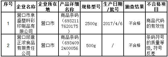 近期,辽宁省质量技术监督、对本省生产的商品条码产品质量进行了监督抽查。本次抽查商品条码企业81家100个批次产品,经检验,2个批次产品质量不合格。