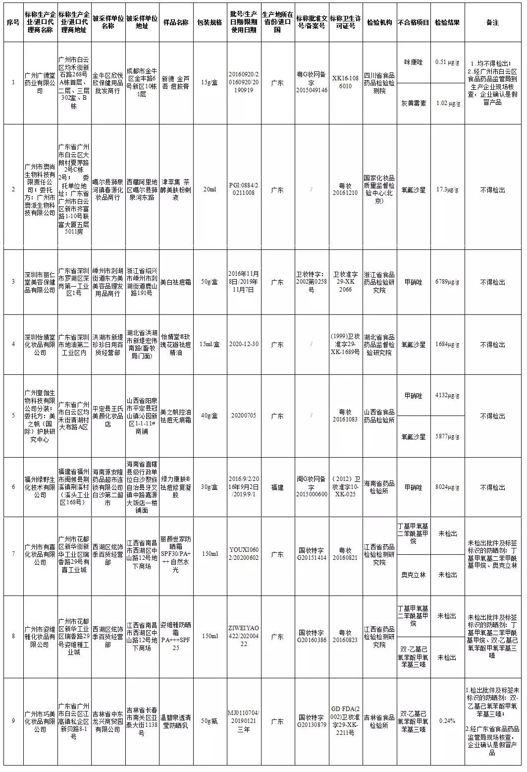 (原题为《、药监、@你,这9批次化妆品不合格》)