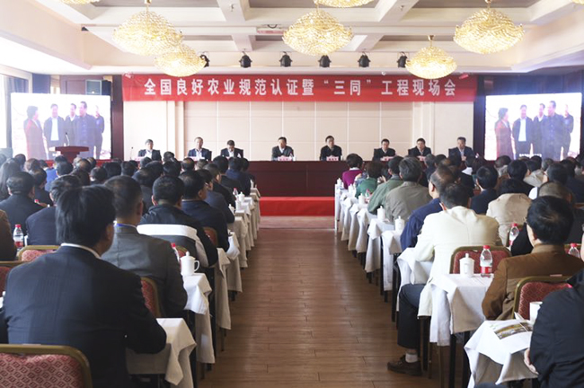 4月27日,、良好农业规范认证暨内外销产品“同线同标同质”工程现场会在陕西省富县召开。、质检总、副、长、、认监委主任孙大伟,陕西省人民、副省长魏增、出席会议并讲话。、认监委副主任刘卫、主持会议。