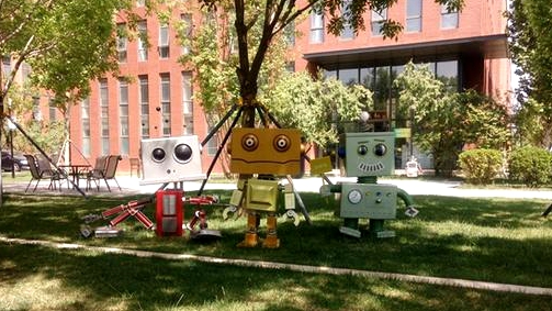 8月21日,记者随媒体采访团一同探访了河北香河机器人产业港,快到小镇时,一个高高矗立在路旁的汽车人“大黄蜂”模型伸开臂膀,欢迎来访客;一下车,举目四望,花园式的园区里满眼都是跟机器人有关的元素,就连草坪路边的垃圾桶也是做成憨态可掬的机器人造型。