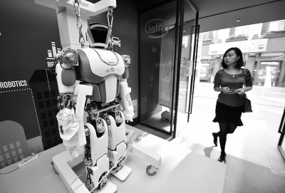 昨天,ART双足大仿人机器人亮相中关村创业大街,引来观众好奇的目光。