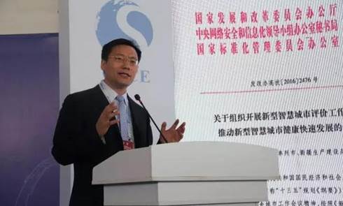 图为、信息中心信息化和产业发展部主任、新型智慧城市建设部际协调工作组、秘书处秘书长单志广