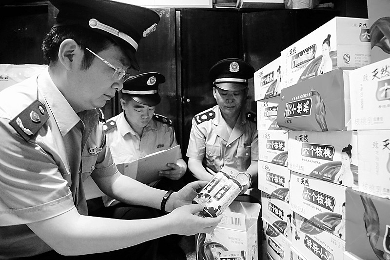 重庆市、万州区分、执法人员近日在辖区一家超市查获涉嫌侵犯 “六个核桃”注册商标专用权的核桃饮料200箱,涉案金额1.3万元。