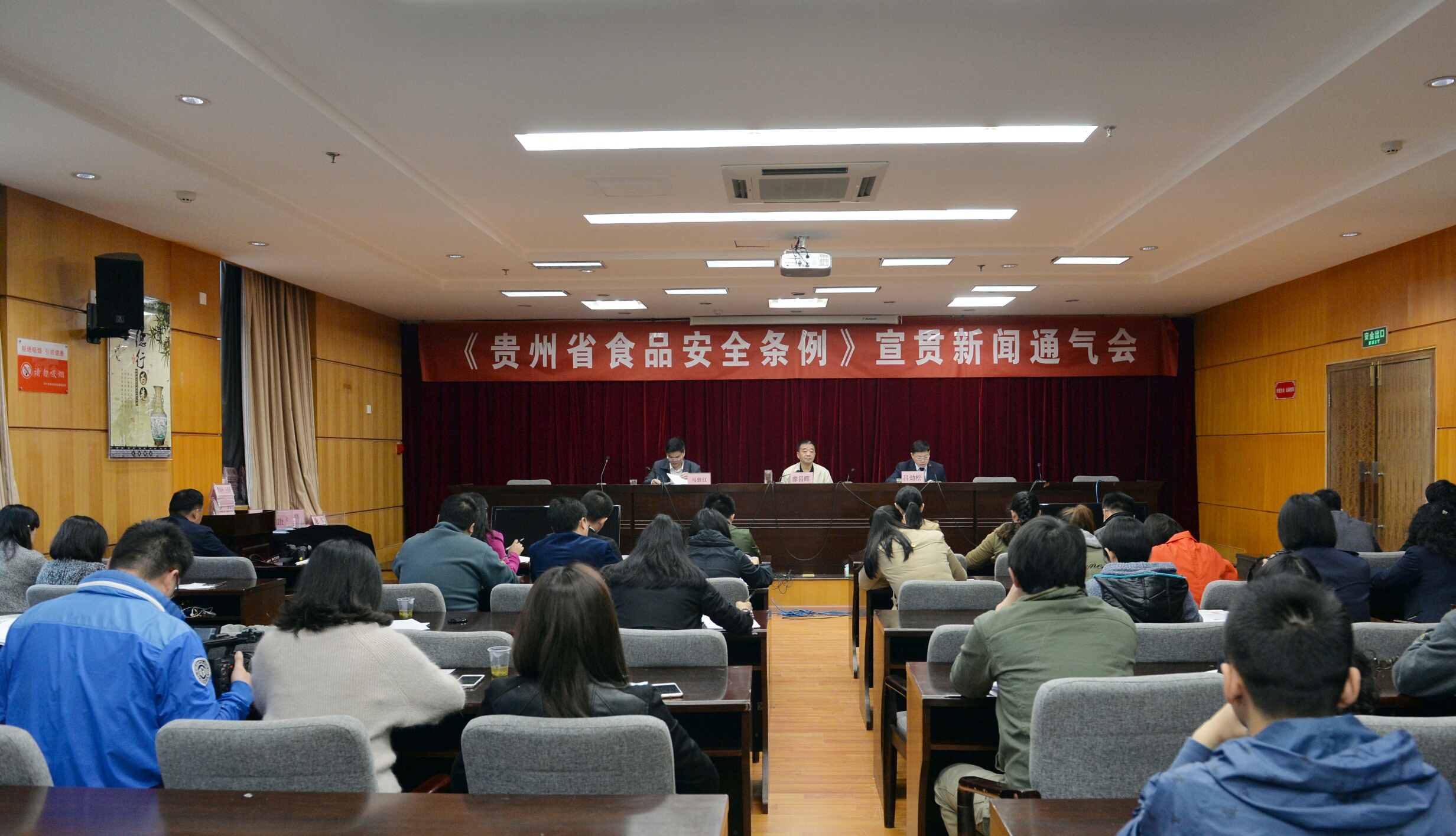 4月26日上午,《贵州省食品安全条例》宣贯新闻通气会在贵阳召开,贵州省食品药品监督管理、新闻发言人、、组成员、副、长吕劲松通报了《贵州省食品安全条例》(2017年版)(以下简称《条例》)出台的背景、过程、内容等有关情况,会议由、组成员、副、长廖昌晖主持,省人大常委会法制工作委员会法规二处、省、机关各处室负责人,以及14家新闻单位23名记者出席会议。