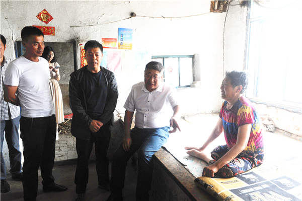 省质监、副巡视员杨福星同工作队成员一起走访看望贫困户,详细了解贫困户的家庭情况、生活收入支出状况、致贫主要原因,研究脱贫对策。