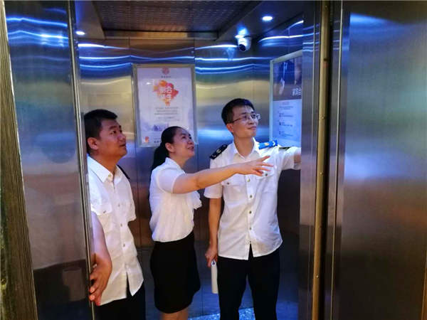 本次检查重点对电梯定期检验、使用登记、作业人员持证、电梯定期维护保养、电梯事故应急措施和救援预案制订及电梯隐患排查与整改情况进行了实地查看。从检查情况来看,特种设备安全总体情况良好,受检电梯均在有效期检验内,但也发现部分电梯合格证书未粘贴,针对此情况,检查人员立即责令相关单位限期整改,并跟踪落实到位。