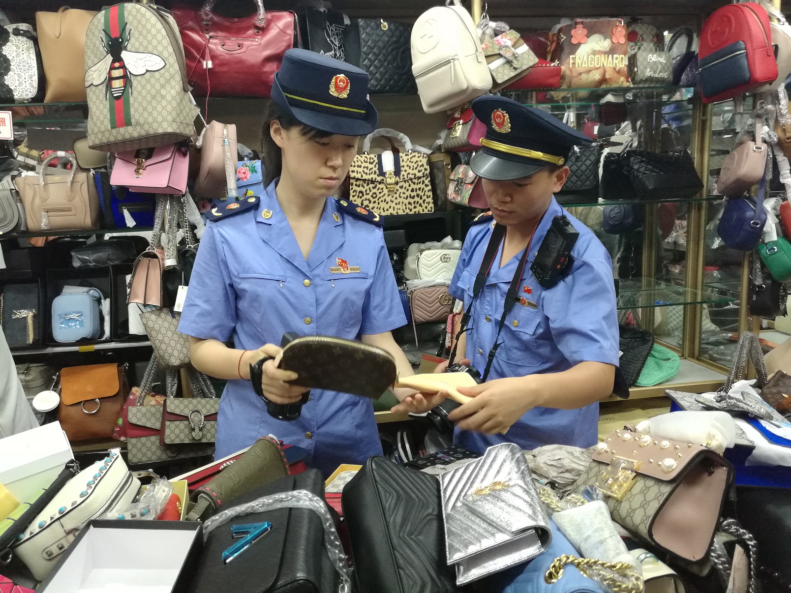 7月10日,针对商户违法行为隐蔽、强、警惕、高、开门经营时间不固定、只卖给熟人和外籍人士的特点,东城分、周密部署、、分三路同时开展执法检查,一路便衣执法人员先行进入店铺附近,对店铺进行控制,其他两路执法人员及时跟进,对经营场所和库房开展检查。经现场检查,执法人员发现商户涉嫌销售大量侵犯“LV”(路易威登)、“MICHAEL KORS”(迈克·科尔斯)、 “CHANEL”(香奈儿)、“HERMES”(爱马仕)、“VALENTINO”(华伦天奴)、“BURBERRY”(巴宝莉)、“CHLOE”(克洛伊)等注册商标专用权产品,包括钱包、双肩包、手袋等多种商品。执法人员对该经营商户的储藏仓库进行了突击检查,经清点,共发现涉嫌侵权商品1373件。