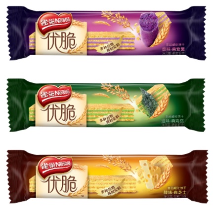 雀巢优脆是一款无涂层威化饼干,是目前市场同类产品中比较少有的采用多种谷物精致而成的产品。威化的夹心层更是精选了真海苔、真紫薯、真芝士等真材实料,为消费者提供多种健康营养的选择。