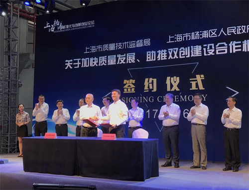 市质监、和杨浦区、共同签署了《上海市质量技术监督、杨浦区人民、关于加快质量发展、助推双创建设合作框架协议》,并为“上海市标准化服务产业试点区”揭牌。