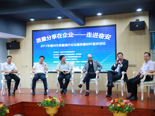 作为2017年、“质量月”活动的一项重要内容,9月22日,福州市市场监管、在福建奋安集团举办了2017年质量提升论坛暨质量标杆现场宣讲活动。本次活动得到了省质监、和福建检验检疫、的精心指导,省质监、刘先义副、长应邀出席。活动还邀请到美国质量、(ASQ)、区首席代表张万泽、来自意大利的品牌专家LUCA以及九牧集团质量中心总经理谢晓、、奋安集团黄有灿董事长等嘉宾,以及福州市70家企业的代表。