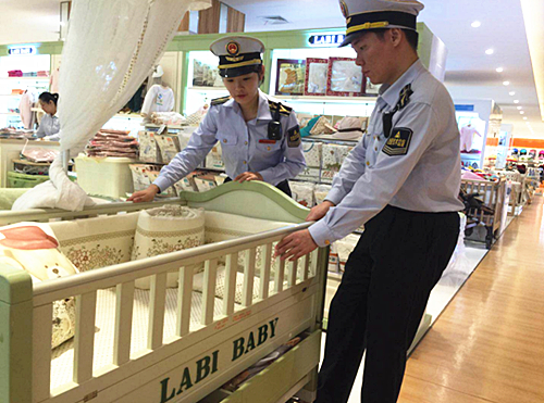 9月26日,市质监、执法总队会同市质检院专家,对本市某家大型商场内多家销售童床的店铺开展执法检查。