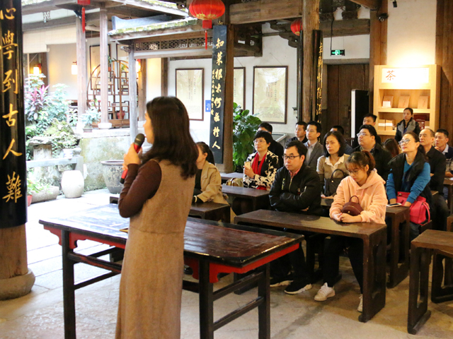 三坊七巷名人家风家训馆位于三坊七巷光禄坊刘家大院东花厅,展示了林则徐、沈葆桢、严复、林觉民等三坊七巷近50位爱国爱家、勤政廉政、教育大家等名人的家风家训,分为“近代风云”“红色记忆”“勤政廉政”“教育大儒”四个部分,通过工作人员的现场解说和参观学习,充分领略到了三坊七巷名人家风家训背后的故事以及历史传承,大家仰观先贤、聆听讲解、纷纷表示受益匪浅。中心领导纷纷站在显著位置上认真聆听讲解,不时拍照记录。