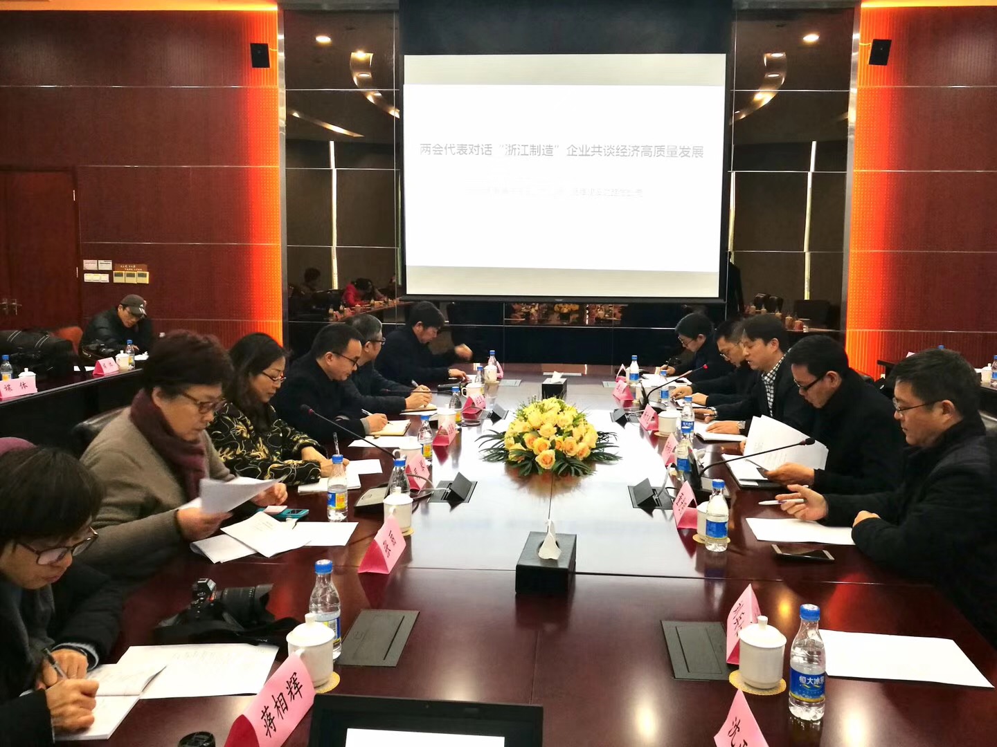 宁波市人大代表、宁波、印刷厂厂长徐卫民,宁波市政协委员、宁波市劳动保障监察支队监察二科科长、经济师冯国铭;宁波市政协委员、宁波大学商学院副教授周琴,浙江省、海外工厂获“品字标浙江制造”认证企业宁波东海集团有限公司副总裁董光明、、“品字标浙江制造”双认证企业浙江大丰实业股份有限公司行政常务副总监吴立锋、“品字标浙江制造”认证企业公牛集团有限公司总工办主任助理刘、仁、“浙江制造”标准制定企业奥克斯空调股份有限公司研发总裁助理卓森庆,宁波方太厨具有限公司副总裁孙利明、方太公司流程与体系管理部部长沈正听,宁波市质监、浙江制造品牌、负责人及相关工作人员、宁波市质监、杭州湾新区分、标准计量科科长许建夫等参加了此次交流座谈。