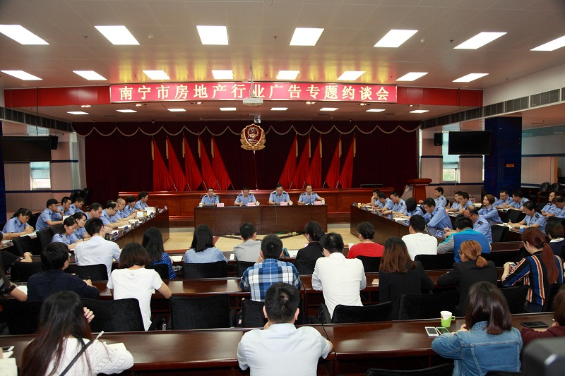 10月20日,南宁市、召集全市79家房地产相关企业和及22家广告经营企业,召开房地产行业约谈会,房地产项目升值或者、回报承诺、未取得预售证即发布预售广告、含有风水等封建迷信内容等十大常见的房地产违法广告行为被当场曝光。