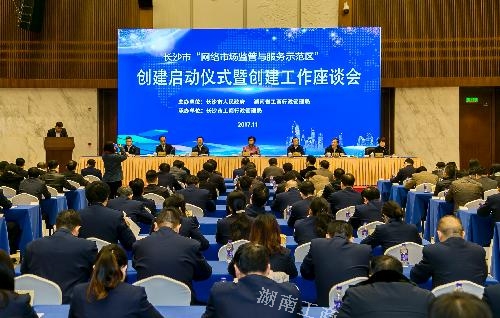 11月29日,长沙市、“网络市场监管与服务示范区”创建启动仪式暨创建工作座谈会在长沙举行。、工商总、副、长甘霖、湖南省人民、副省长向力力出席启动仪式并讲话。湖南省、、组书记、、长李金冬主持启动仪式。在启动仪式上,、工商总、网监司司长王树、宣读《、工商总、关于同意长沙市创建、“网络市场监管与服务示范区”的批复》,长沙市委常委、常务副市长舒行钢致欢迎辞并宣读《长沙市创建网络市场监管与服务示范区总体方案》,湖南大学副校长谢赤作为专家代表发言,京东集团、58集团、厦门市美亚柏科信息股份有限公司等企业代表分别发言。
