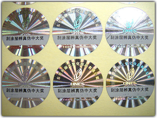 5. 掀开型或刮开型镭射防伪标签:是激光镭射全息技能与数码防伪技能的有机联系,、大的优点是克服了激光镭射标签每个标签都相同的特色,一起也能够让消费者能够便利辨认其标签的真实、,其每一枚标签后边的暗码都是仅有的,消费者能够经过相应的电话、网站、短信等办法验证。