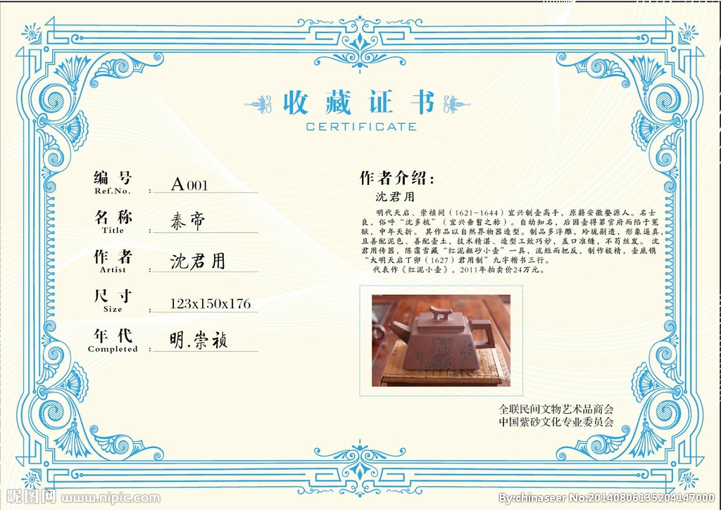 保藏证书是用来标明保藏品(或者是协助断定)事理的一个凭据,更是为其添加保藏价值的主要元素之一,更是为许多保藏者所带来的荣誉。
