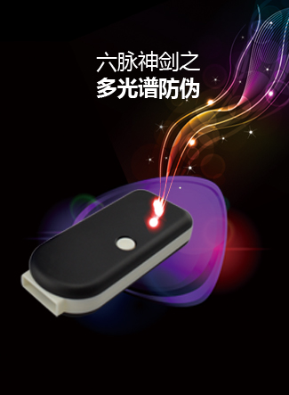 多种具有超强光谱特征的资料制作成一种特别多光谱防伪资料,合作专用检测仪。它是防伪范畴的一朵奇葩。採用光譜識別技術,將富含特别光譜的元素,添加到油墨、產品自身的材質中,如陶瓷、木材、鐵、服裝中,使產品自身富含該特種元素,通過光譜檢測儀,檢查是不是具有該種元素,而達到鑒別真偽的意图。