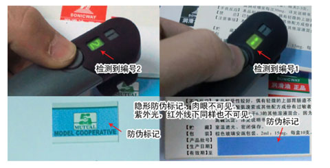 经过微子解码仪解码,微子解码仪细巧,运用方便灵敏,只需按着按键,检查打印区域,若打印区域检查出微子油墨,便会经过小屏幕显现数字编号。