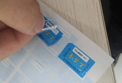 2.易碎纸防伪标签:易碎纸防伪标签采用特殊易碎纸或易碎不干胶材料,可印有商标、文字说明和条形码,可粘贴在包装上,不能完全揭开。一旦揭开,纸就会碎。