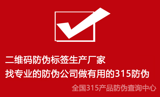 二维码防伪标签生产厂家。315防伪网站,20年专业经验,数字化产品价值链供应商。所以只要做防伪的品牌产品,就去这家公司吧。根据企业需求制定产品二维码防伪标签,制定是一套完善的防伪体系,赋予不同功能,也可以有不同风格。