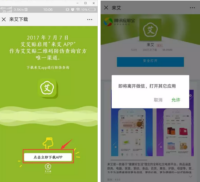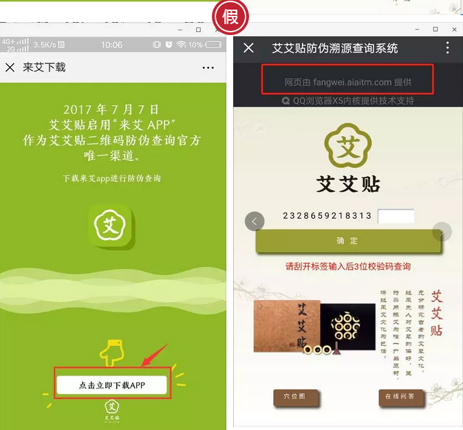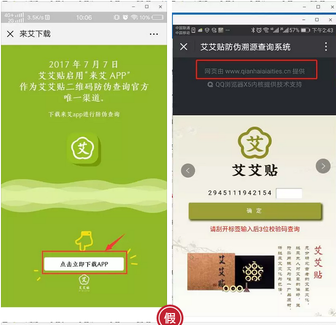 “来艾”APP是艾艾贴二维码防伪查询网站唯一渠道!