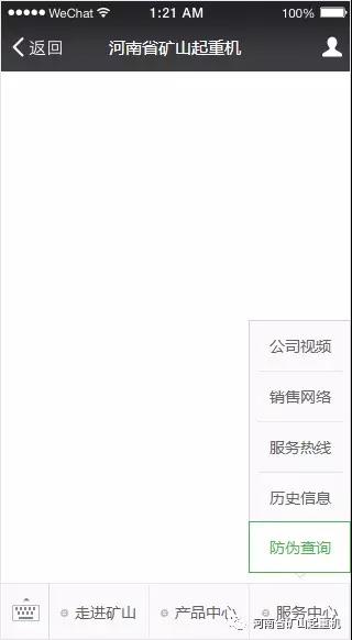在移动社交风靡、的时代,使用微信的用户越来越多。为了更好的为客户服务、提高服务质量,河南矿山在微信公众号上开通了查询产品防伪码真假的功能。对于以往登陆电脑查询,更简单,更便利。