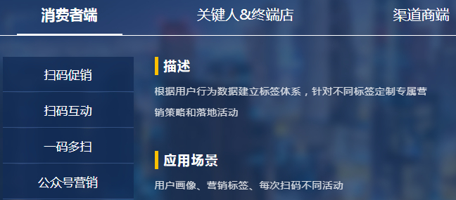 营销与一物一码相连,实时查看数据,提供营销分析,为商业决策提供依据。、315产品防伪查询中心,二维码作为品牌与消费者之间的桥梁,扫描并参与品牌互动,增强品牌粘、。新的营销技巧可以轻松帮助企业抓住新老客户,让企业更好地进行促销。根据不同群体的特点,制定传播和宣传方案,建立用户对价值传播的反馈感知,提高消费者对企业的粘、。与消费者建立双向沟通、深度互动、长期反馈关系,使运营可持续发展。提高消费者的回购率,鼓励消费者认可和认可品牌,让消费者参与品牌成长。