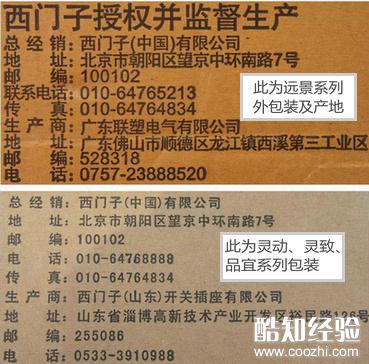 因为西门子开关有不同的系列,所以,我们要了解不同系列的产地是不同的。例如,目前远景系列的生产是在广东,生产商是广东联塑电气有限公司。而灵动系列、灵致系列、品宜系列的生产商是西门子(山东)开关插座有限公司。不过,无论是什么系列,总经销都是西门子(、)有限公司。一旦,您发现所购买的不是这两个生产厂家的西门子电气产品,而是常见的香港西门子、深圳西门子等基本可以判定为假货。