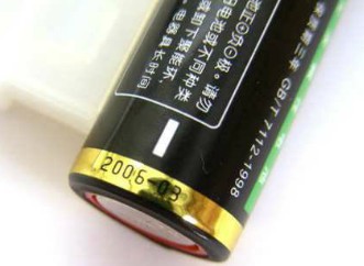 4.生产批号识别,正品电池的生产批号采用的是机打方式,字体是由点阵组成,而假货的批号则是印刷在绝缘纸上的,一看便知,见下图。