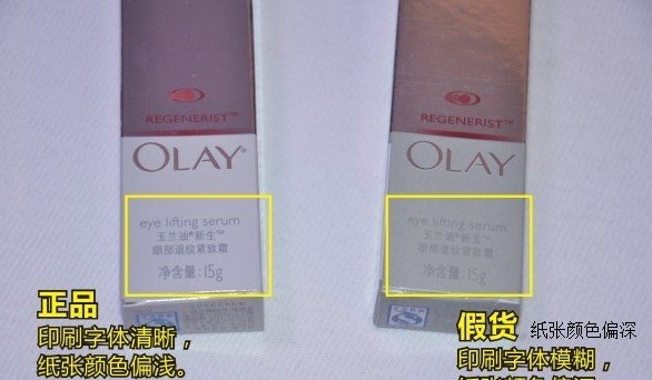 5、OLAY玉兰油新生眼部退纹紧致霜真假辨别,鉴别技巧(真假鉴别图):