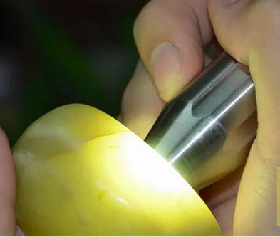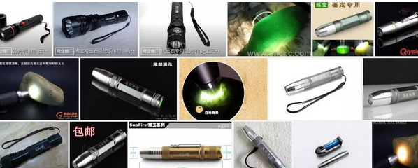 购玉石成品时使用强光手电筒目的比较简章单一,就是观察玉石成品是否有瑕疵、绺裂,是否有可接受的明纹、暗纹等等。购买玉石成品时,可借用店家的强光手电筒对玉石成品通过打光观察,打光的方法是将玉石成品平放由底面向上打光,光线由下到上贯穿整个玉石成品,对于透明或半透明的玉石成品,是否有裂有纹,一目了然。