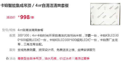 从、价比来看,铝扣板算是目前、价比比较高的,后期维护也比较方便。炎热夏季,小爱不得不推荐以下这款自清洁智能吊、,同样是铝扣板,价格优惠的不要不要的,对集成吊、有比过价格的业主,看到这个价格,是不是眼前一亮呢!
