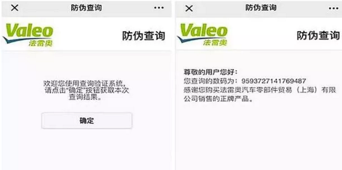 此外在“法雷奥汽车售后”微信公众号菜单栏中,“互动专区”中设有“防伪查询”栏目,点击进入可以获得关于防伪标签的更多信息。