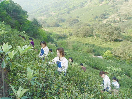 除了采摘要摘得早、采得嫩,保持芽叶匀整一致外,只有芽长1.5到2厘米的芽叶,才可以加工成洞庭碧螺春精品茶。 杨 珊 摄