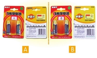 4、正品包装上“、环境标志”颜色明亮;假冒电池颜色暗淡。