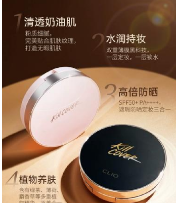 对比产品细节:正品珂莱欧气垫的瓶底会有许多凹痕,用手触摸可以感觉得到;而假货的瓶底则可能光滑无痕。此外,正品的气垫粉扑上印有“CLIO”字样,而假货则可能没有或字迹模糊。