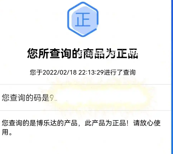 6、查看结果:系统处理后显示验证结果,告知商品是否为正品。