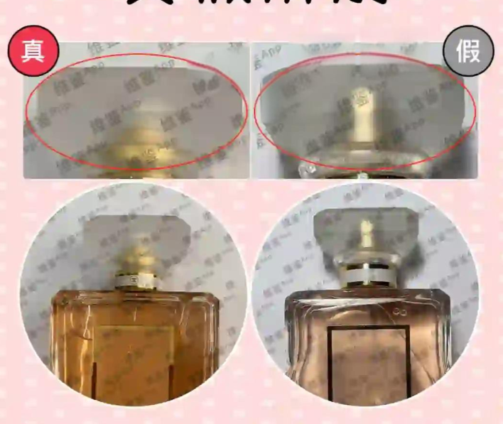 ‌案例‌:某款假冒Chanel No.5香水,外盒上的双C标志边缘出现毛刺,与正品光滑的金属质感形成鲜明对比。