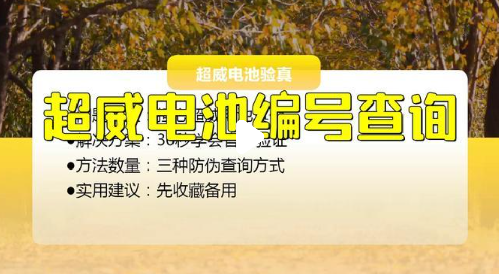 超威电池可通过官网、微信公众号、电话、短信和二维码等方式查询防伪码真伪。具体方法如下: