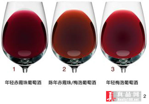 红葡萄酒应呈红色、紫红色或石榴红,经陈酿的红葡萄酒呈宝石红、血虹或暗红,总体上红润晶烁,晶莹剔透。凡液面呈深褐色者,质量较差。