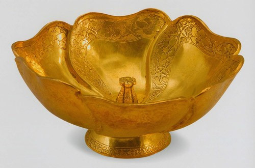 当然,古代的金银器出土时,有些表层带有铜锈,特别是银制品。这种情况是由于金银器在出土前接触过其他腐蚀的铜,如与铜器一起随葬,而沾染了铜锈。另一个原因,则是古代大多数银器的质地是含有一定成分的铜合金,当铜氧化腐蚀后,便在银器上形成了铜锈覆盖层。不过这种情况大多可以经过除锈垢处理,以复原器物的本来面目。此外,富有经验的人还可以通过器物的声音、味道以及颜色、手感等,来辨别金银器的真伪。不过,这需要有丰富实践经验的积累。