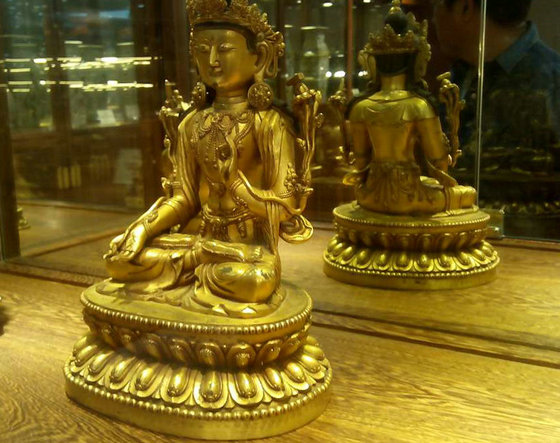 3. 真品佛像几乎都是熟铜,多次炼出的,而且铜壁很厚,仿制的壁就很薄,铜料质地好,一上手分量就不一样。