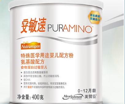 这款奶粉主要是将牛奶蛋白全部分解为氨基酸,所以比起普通的牛奶蛋白更容易吸收,因为是100%氨基酸配方,所以能很好的降低过敏、,对于有过敏症状的宝宝,能快速的缓解,而且还含有MCT,也就是中链不饱和脂肪酸,能让宝宝更好的吸收营养。如果宝宝对牛奶蛋白耐受后,可以在医生的指导下,从氨基酸奶粉奶粉慢慢过渡到—深度婴儿水解蛋白奶粉—适度婴儿水解蛋白奶粉—普通配方奶粉。