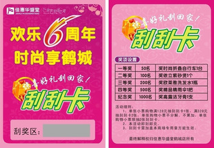 刮刮卡的内容有必要完好精确,如果是刮奖卡,应具体阐明奖项信息,兑奖方法,活动时间,以及有用、阐明等等;
