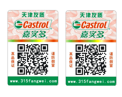 二维码防伪标签的优势是制造本钱低价,并且美观大方,、主要的优势是不只能够防伪,还能够到达为公司做宣扬推广的作用,关于安稳用户集体,扩展商品知名度会有极好的作用。315防伪国内首家将二维码防伪和微信防伪结合起来,树立的综合防伪一体化解决方案,运用户愈加便利、快捷的查询真伪,并且给了公司更多的展开网络推广的途径,经过扫码能够树立微商城、积分抽奖等互动信息,使消费者不时重视,取得更多曝光率的同时,增大商品的销量。
