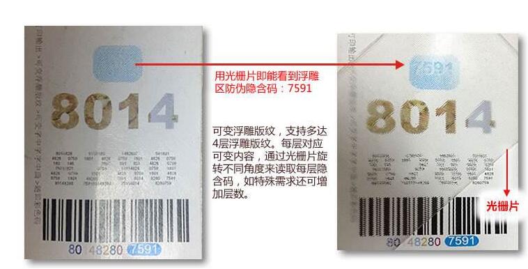 2.防伪技术的优点:潜影防伪技术,是一种非常实用的防伪技术,它是用一种独有的软件来制作的。利用潜影技术印刷出来的商品,商品上的凹凸感非常的好,拿在手上侧着看就能看出隐藏的文字或者图案,很好辨别。