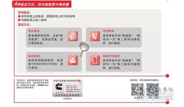 此外,用户能够经过登录康明斯网站网站,拨打查询电话,以及发送短信等传统方法进行查询。
